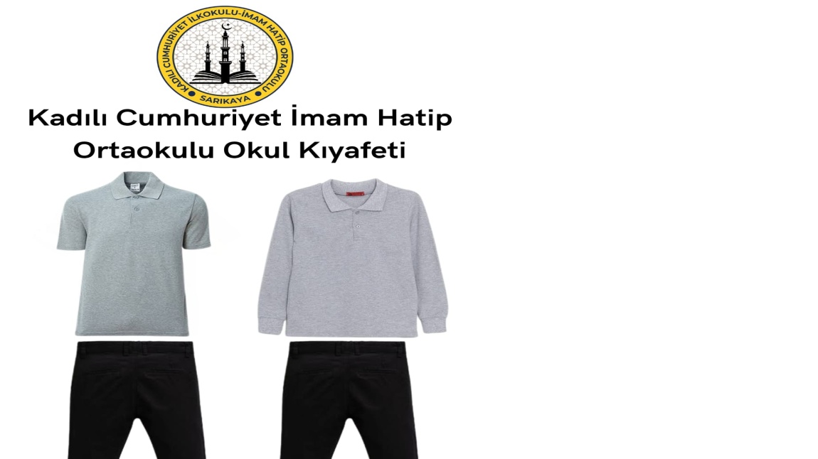 Okul Aile Birliği ve Okul İdaresi işbirliği ile 2025-2026 Eğitim-Öğretim Yılı ortaokul öğrencilerimiz için belirlediğimiz okul kıyafet rengimiz gri polo yaka kısa ve uzun kollu tşört ve siyah pantolon